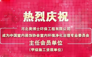 熱烈慶祝河北美博士環(huán)保工程有限公司成為中國(guó)室內(nèi)裝飾協(xié)會(huì)室內(nèi)環(huán)境凈化治理專(zhuān)業(yè)委員會(huì)主任會(huì)員單位。