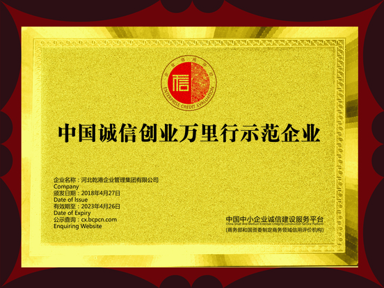 中國(guó)誠(chéng)信創(chuàng)業(yè)萬(wàn)里行示范企業(yè)