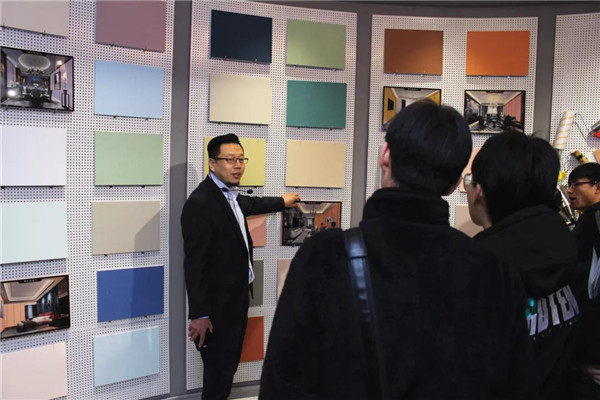 參觀完總部后,在解說員的帶領下,河北環(huán)境工程學院一行人來到了我公司品牌體驗展示中心。對于我司相關環(huán)保產(chǎn)品大家都還比較陌生,常凱??偂⒗钣聞羁偡謩e對室內(nèi)污染物治理展廳、企業(yè)綠色裝飾材料展廳進行了細致介紹,讓大家對凈化原理及環(huán)保材料等有了一個全新的認識!